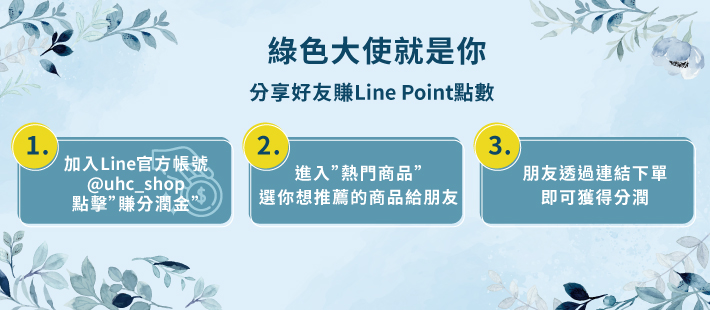加入品牌 LINE 官方帳號好友後,訂單成立時才可獲得推薦購買回饋獎勵。